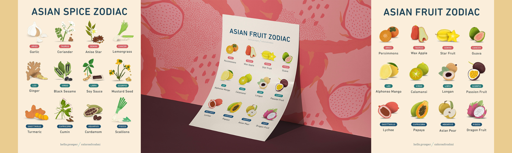 We partnered together on two zodiac posters, Asian Fruit and Asian Spices.